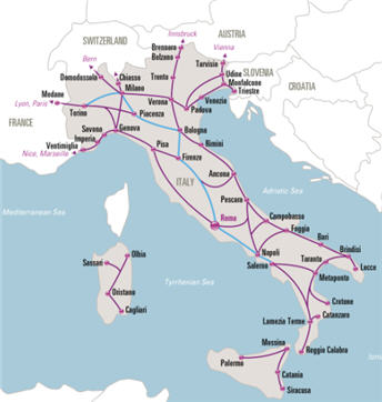• 羅馬-威尼斯-羅馬:每日26個班次