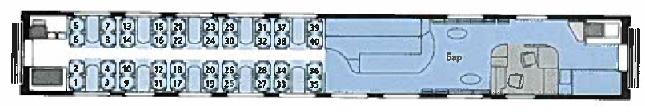 • 酒吧車位於5號車廂。旅客可購買小食品、飲料和餐點。共有10張四人桌子。